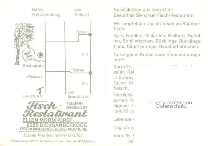 Dieksanderkoog Fisch-Restaurant Teilansichten Dieksanderkoog postalisch nicht gelaufen nach 1965 Werbekarte (keine Postkarte) Erhaltung siehe scans [LiesaD40] Werbekarte (keine Postkarte) LiesID40