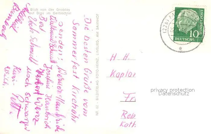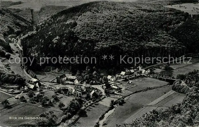 Dies Blick von der Groblay ins Gelbachtal Dies postalisch gelaufen 1958 Erhaltung siehe scans [FriedD77] Frierer