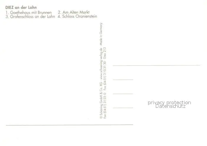 Diez_Lahn Goethehaus mit Brunnen Alter Markt Grafenschloss an der Lahn Schloss Oranienstein Diez_Lahn postalisch nicht gelaufen nach 1965 Erhaltung siehe scans [WerneD78] WernPID7