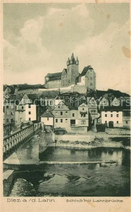 Diez_Lahn Lahnbruecke Blick zum Schloss Diez_Lahn postalisch nicht gelaufen 1921-1965 Erhaltung siehe scans [FriedD77] Frierer