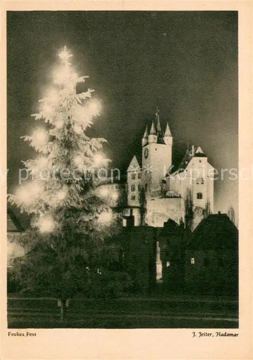 Diez_Lahn Weihnachtskarte Christbaum Schloss Jugendherberge Nachtaufnahme Diez_Lahn postalisch nicht gelaufen 1921-1965 Erhaltung siehe scans [FriedD77] Frierer