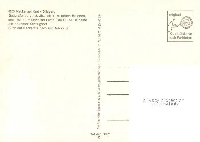 Dilsberg Gaugrafenburg 13. Jhdt. Blick auf Neckarsteinach und Neckartal Dilsberg postalisch nicht gelaufen nach 1965 Erhaltung siehe scans [FriedD77] Frierer