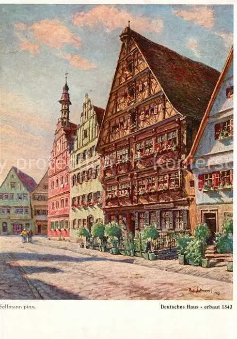 Dinkelsbuehl Deutsches Haus Gemaelde Dinkelsbuehl postalisch nicht gelaufen 1921-1965 Erhaltung siehe scans [WerneD78] WernPID7