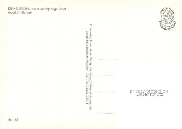 Dinkelsbuehl Gasthof Sonne Dinkelsbuehl postalisch nicht gelaufen nach 1965 Erhaltung siehe scans [WerneD78] WernPID7