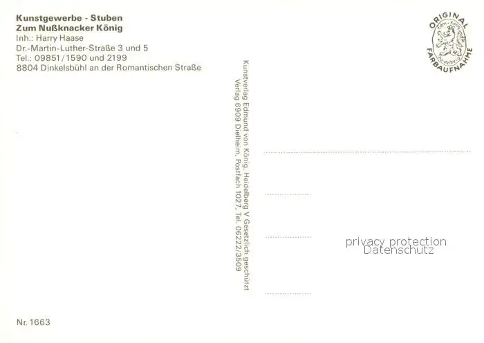 Dinkelsbuehl Kunstgewerbe Stuben Zum Nussknacker Koenig Dinkelsbuehl postalisch nicht gelaufen nach 1965 Erhaltung siehe scans [WerneD78] WernPID7