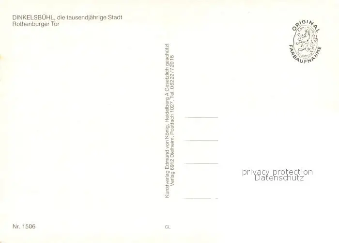 Dinkelsbuehl Landesgartenschau Gruen und Gaerten vor historischen Mauern Rothenburger Tor 1000jaehrige Stadt Dinkelsbuehl postalisch nicht gelaufen 1988 Erhaltung siehe scans [FriedD77] Frierer