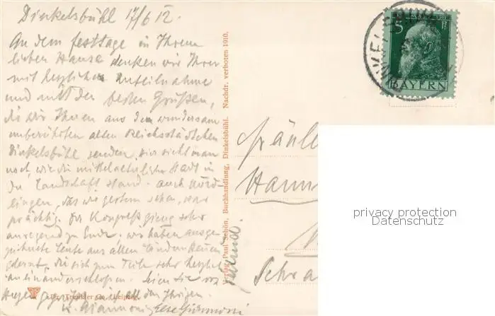 Dinkelsbuehl Partie am Muehlgraben Dinkelsbuehl postalisch gelaufen 1912 Erhaltung siehe scans [FriedD77] Frierer