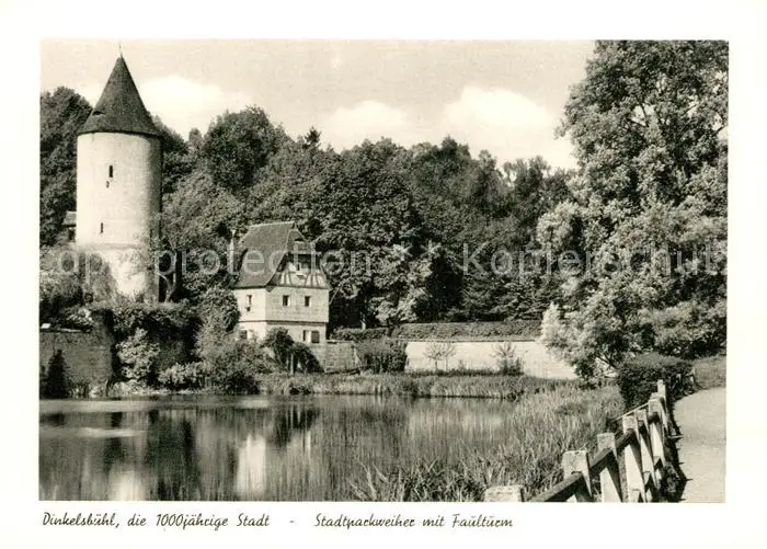 AK / Ansichtskarte Dinkelsbuehl Stadtparkweiher mit Faulturm Dinkelsbuehl