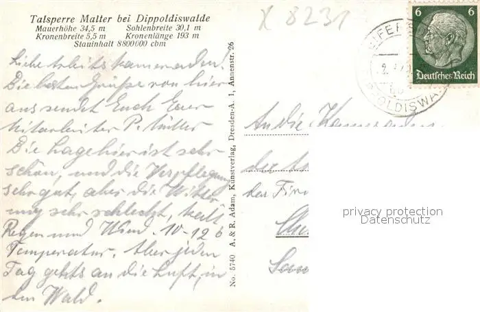 Dippoldiswalde_Osterzgebirge Talsperre Malter Fliegeraufnahme Dippoldiswalde postalisch gelaufen 1921-1965 Erhaltung siehe scans [WerneD78] WernPID7