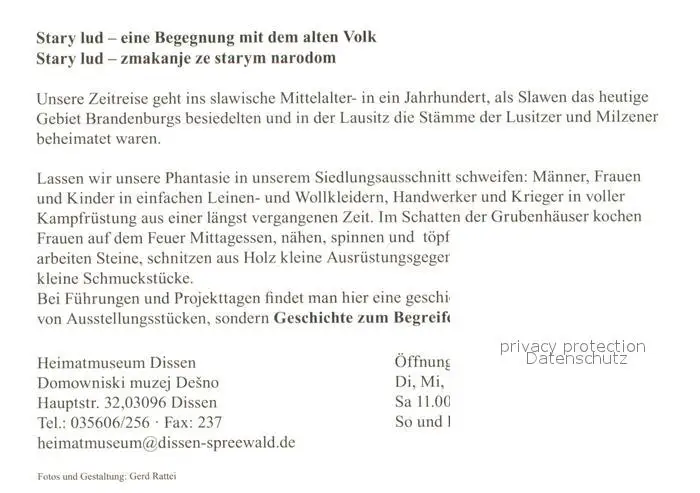 Dissen_Niederlausitz Heimatmuseum Dissen_Niederlausitz postalisch nicht gelaufen nach 1965 Werbekarte (keine Postkarte) Erhaltung siehe scans [LiesaD40] Werbekarte (keine Postkarte) LiesID40