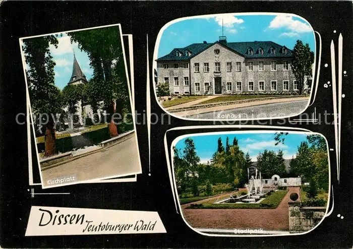 AK / Ansichtskarte Dissen_Teutoburger_Wald Rathaus Kirchplatz Stadtpark Dissen_Teutoburger_Wald