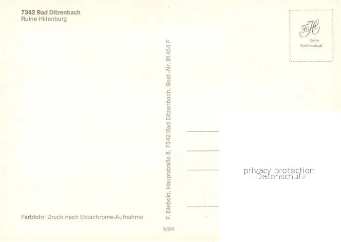Ditzenbach_Bad Ruine Hiltenburg Ditzenbach_Bad postalisch nicht gelaufen nach 1965 Erhaltung siehe scans [KathaD81] Kathoren