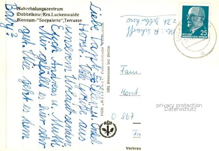Dobbrikow Naherholungszentrum Konsum Seepalette Gaststaette Terrasse Dobbrikow postalisch gelaufen 1974 Erhaltung siehe scans [FriedD77] Frierer