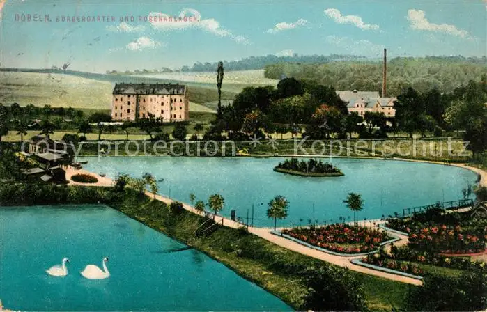 Doebeln Kategorie Alte Ansichtskarten Postkarten bx44702 Doebeln Burgergarten Rosenanlagen Doebeln postalisch gelaufen Erhaltung siehe scans [NatalD47]