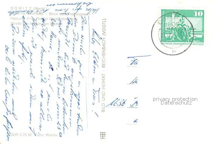 Doemitz Konsum-Kaufhaus Festungswall Festung Fritz Reuter Gedaechtnishalle Strasse der Nationalen Einheit Doemitz postalisch gelaufen 1980 Erhaltung siehe scans [FriedD77] Frierer