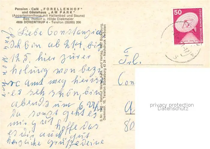 Doerentrup Pension Cafe Forellenhof und Gaestehaus Doerentrup postalisch gelaufen 1980 Erhaltung siehe scans [WerneD78] WernPID7