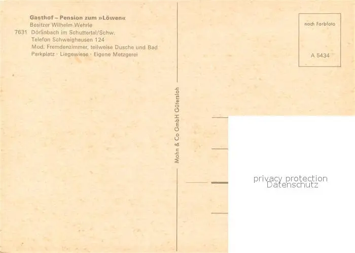 Doerlinbach Gasthof Pension zum Loewen Gastraum Schwarzwald Doerlinbach postalisch nicht gelaufen nach 1965 Erhaltung siehe scans [FriedD77] Frierer