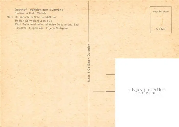 Doerlinbach Gasthof Pension zum Loewen Gastraum Schwarzwald Doerlinbach postalisch nicht gelaufen nach 1965 Erhaltung siehe scans [FriedD77] Frierer