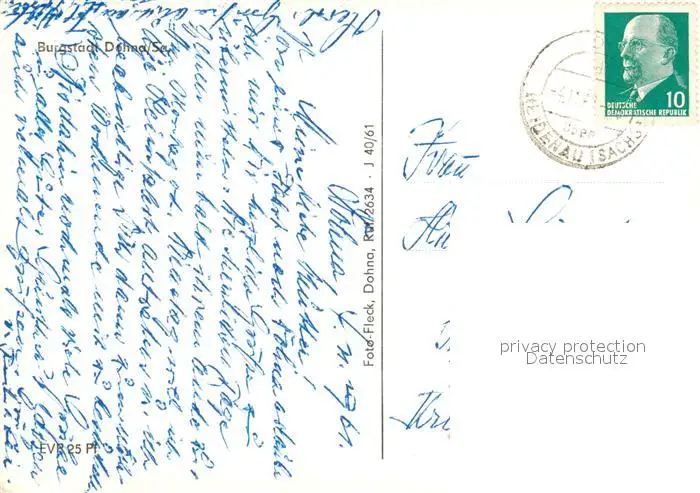 Dohma Ortsansicht Burgstadt mit Kirche Dohma postalisch gelaufen 1961 Erhaltung siehe scans [FriedD77] Frierer