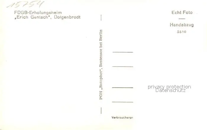 Dolgenbrodt FDGB Erholungsheim Erich Gentsch Handabzug Dolgenbrodt postalisch nicht gelaufen 1968 Erhaltung siehe scans [FriedD77] Frierer