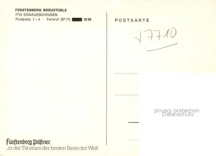 Donaueschingen Fuerstenberg Braeustueble Donaueschingen postalisch nicht gelaufen nach 1965 Erhaltung siehe scans [LiesaD40] LiesID40