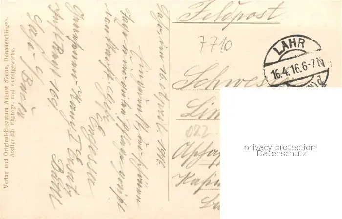 Donaueschingen Hotel Adler u. Rathaus Feldpost Donaueschingen postalisch gelaufen 1916 Feldpost auf Karte (Motiv) Erhaltung siehe scans [LiesaD40] Feldpost auf Karte (Motiv) LiesID40