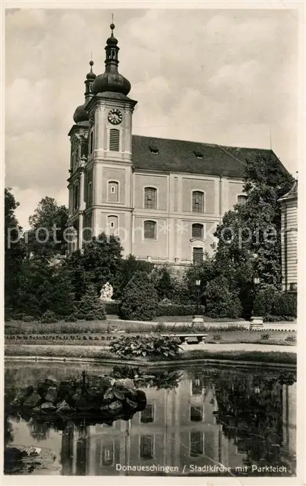 AK / Ansichtskarte Donaueschingen Kirche und Teich Donaueschingen