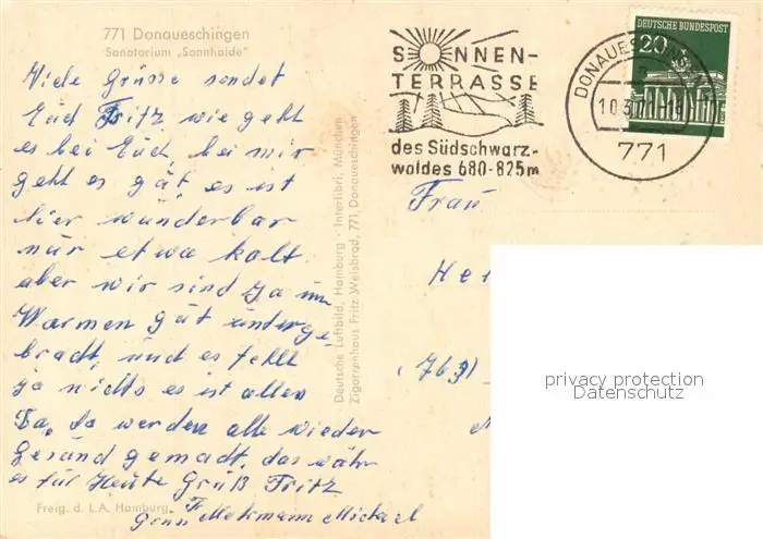 Donaueschingen Sanatorium Sonnhalde Fliegeraufnahme Donaueschingen postalisch gelaufen 1970 Erhaltung siehe scans [WerneD78] WernPID7