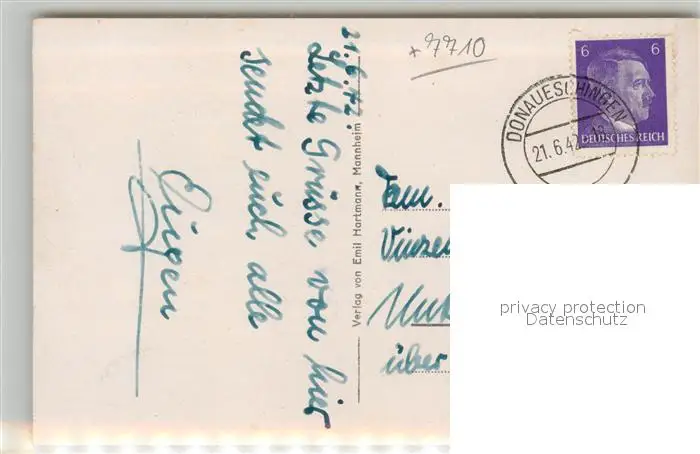 Donaueschingen Schlossgarten mit Brigach Donauquelle Stadtkirche Hanselebrunnen Donaueschingen postalisch gelaufen 1942 Erhaltung siehe scans [LiesaD40] LiesID40