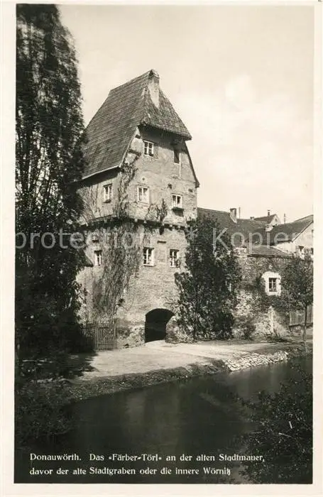 Donauwoerth Faerber Toerl Stadtmauer Stadtgraben Innere Woernitz Donauwoerth postalisch nicht gelaufen 1921-1965 Erhaltung siehe scans [FriedD77] Frierer