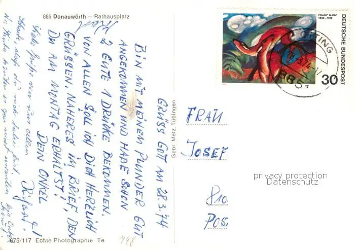 Donauwoerth Rathausplatz Donauwoerth postalisch gelaufen 1974 Erhaltung siehe scans [FriedD77] Frierer
