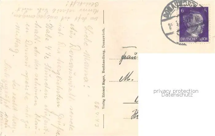 Donauwoerth Stadtzoll Donauwoerth postalisch gelaufen 1943 Erhaltung siehe scans [WerneD78] WernPID7