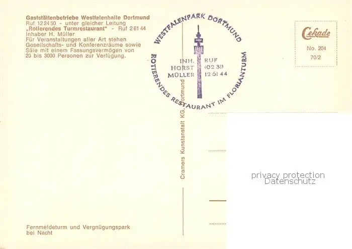 Dortmund Gaststaettenbetriebe Westfalenhalle Dortmund Rotierendes Turmrestaurant Dortmund postalisch nicht gelaufen nach 1965 Erhaltung siehe scans [FriedD77] Frierer