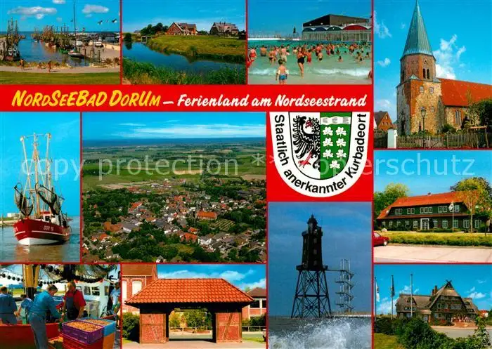 AK / Ansichtskarte Dorum Hafen Schwimmbad Kirche Fischmarkt Leuchtturm Dorum