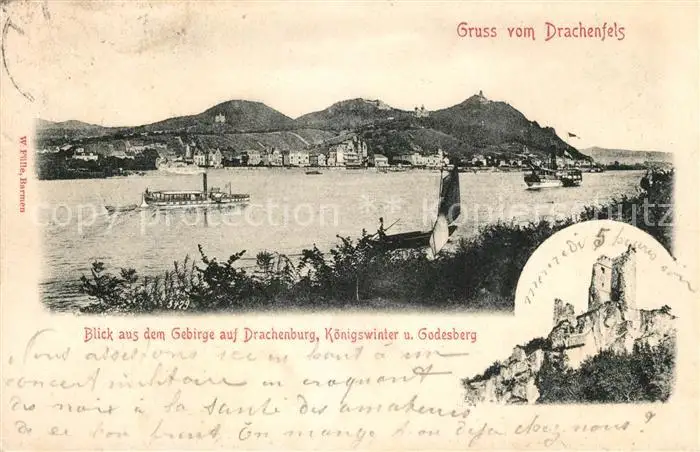 Drachenfels Drachenburg Koenigswinter und Godesberg Drachenfels postalisch gelaufen 1901 Erhaltung siehe scans [LiesaD40] LiesID40