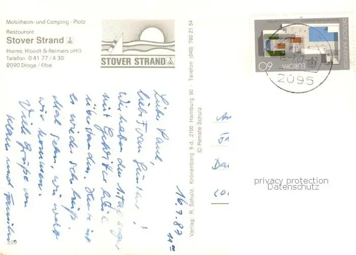 Drage_Elbe Mobilheim und Campingplatz Yachthafen Strand Drage_Elbe postalisch gelaufen 1987 Erhaltung siehe scans [FriedD77] Frierer