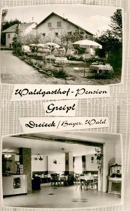 AK / Ansichtskarte Dreieck_Regen Waldgasthof Pension Greipl Aussen u. Innenansicht Dreieck Regen