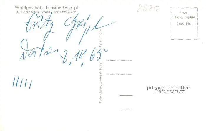 Dreieck_Regen Waldgasthof-Pension Greipl Aussen- u. Innenansicht Dreieck Regen postalisch nicht gelaufen 1965 Erhaltung siehe scans [LiesaD40] LiesID40