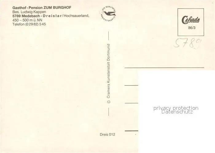 Dreislar Gasthof Pension Zum Burghof Ortsansicht mit Kirche Dreislar postalisch nicht gelaufen 1986 Erhaltung siehe scans [FriedD77] Frierer