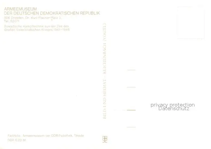 Dresden Armeemuseum der DDR Sowj Kampftechnik von 1941-45 Dresden postalisch nicht gelaufen nach 1965 Erhaltung siehe scans [WerneD78] WernPID7