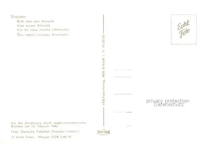 Dresden Blick ueber die Altstadt vor der Zerstoerung 1945 Vogelperspektive Repro Dresden postalisch nicht gelaufen 1978 Erhaltung siehe scans [FriedD77] Frierer