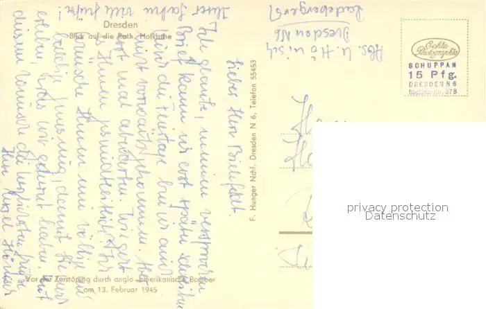 Dresden Blick zur kath Hofkirche Dresden postalisch nicht gelaufen nach 1965 Erhaltung siehe scans [FriedD77] Frierer