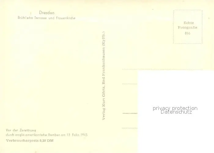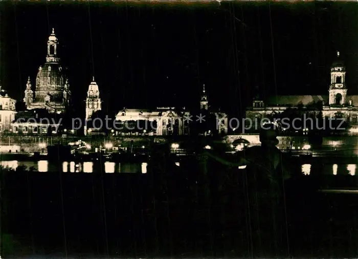 Dresden Bruehl'sche Terrasse und Frauenkirche Nachtaufnahme vor Zerstoerung 1945 Repro Dresden postalisch nicht gelaufen 1959 Erhaltung siehe scans [FriedD77] Frierer
