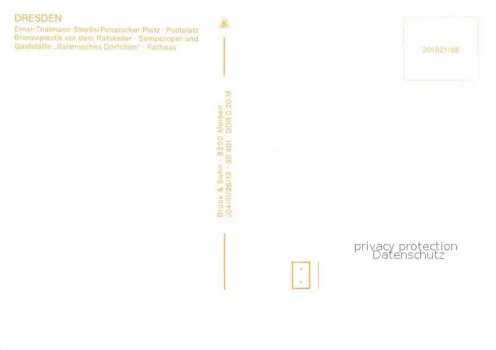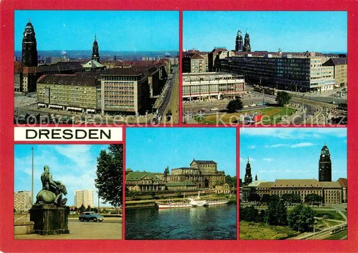 Dresden Ernst Thaelmann Strasse Pirnaischer Platz Postplatz Bronzeplastik Semperoper Gaststaette Italienisches Doerfchen Rathaus Dresden postalisch nicht gelaufen 1988 Erhaltung siehe scans [FriedD77] Frierer