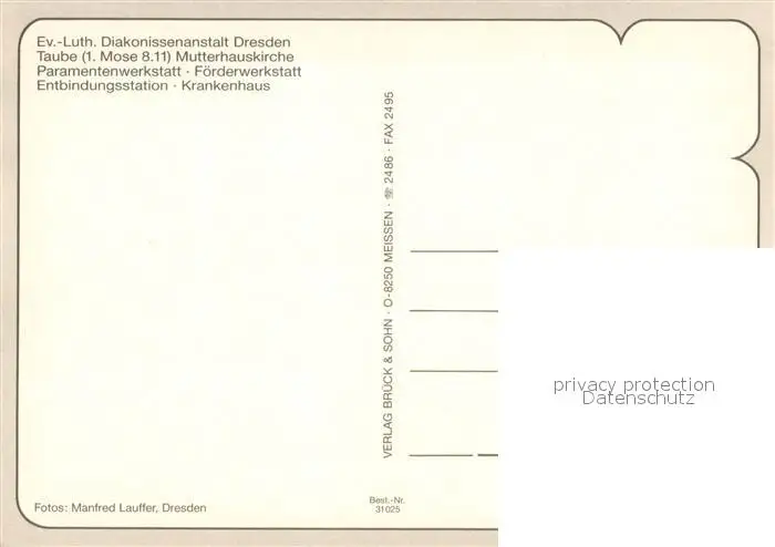 Dresden Ev luth Diakonissenanstalt Taube Mutterhauskirche Paramentenwerkstatt Foerderwerkstatt Entbindungsstation Dresden postalisch nicht gelaufen nach 1965 Erhaltung siehe scans [WerneD78] WernPID7