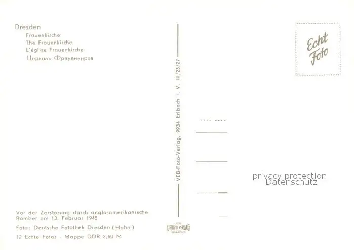 Dresden Frauenkirche Fliegeraufnahme Dresden postalisch nicht gelaufen nach 1965 Erhaltung siehe scans [WerneD78] WernPID7