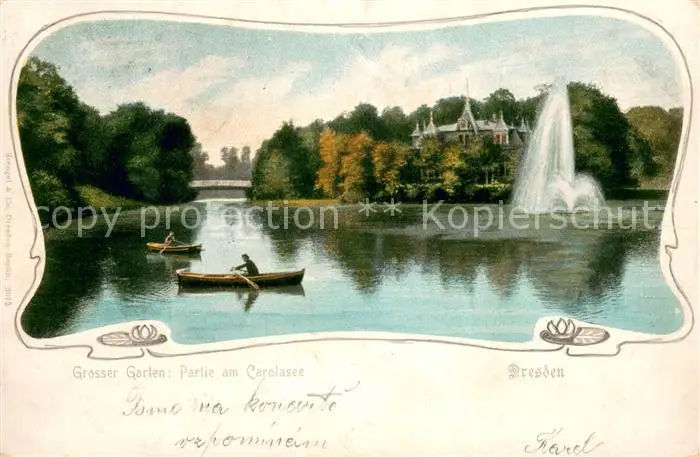 Dresden Grosser Garten Partie am Carolasee Jugendstil-Typografie Dresden postalisch gelaufen 1902 Erhaltung siehe scans [LiesaD40] LiesID40