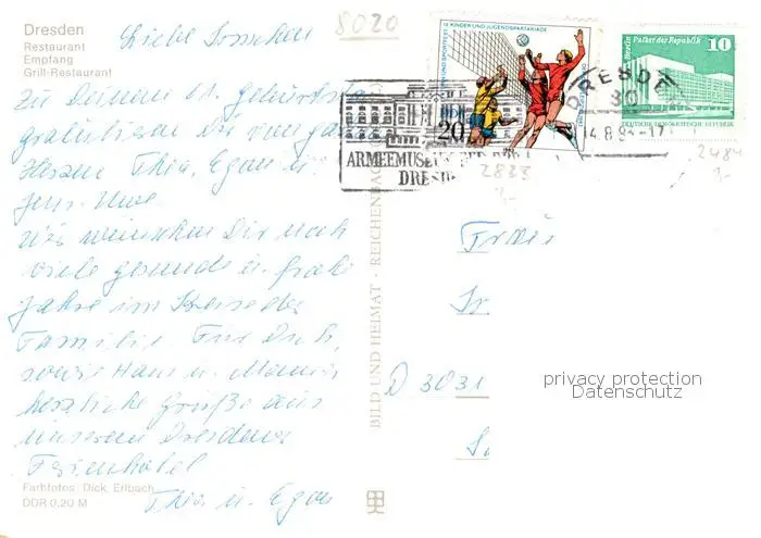 Dresden Interhotel Bastei Restaurant Empfang Grillrestaurant Dresden postalisch gelaufen 1993 Erhaltung siehe scans [FriedD77] Frierer