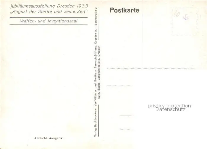 Dresden Jubil?umsausstellung August der Starke und seine Zeit Waffen- und Inventionssaal Dresden postalisch nicht gelaufen 1933 Erhaltung siehe scans [LiesaD40] LiesID40