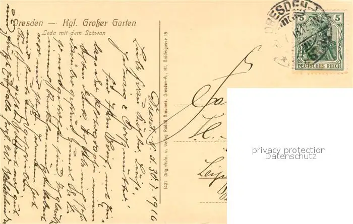 Dresden Kgl. Grosser Garten Leda mit dem Schwan Denkmal Statue Dresden postalisch gelaufen 1916 Erhaltung siehe scans [FriedD77] Frierer